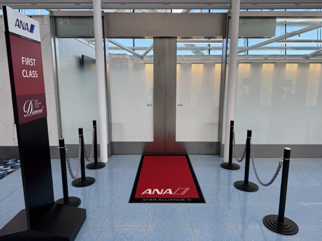 👇空港に到着してANAのRカウンターの中へ。この専用入口をくぐる瞬間の高揚感は、何度味わってもいいものですね。VIP感は成田のZカウンターには劣りますけれど。