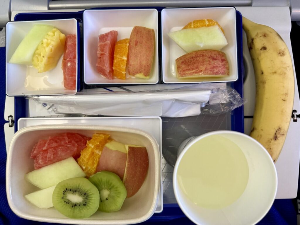 なので私はエコノミークラス利用の場合はなるべくラウンジで腹パンに食べて、機内ではフルーツプレートにする考えです。