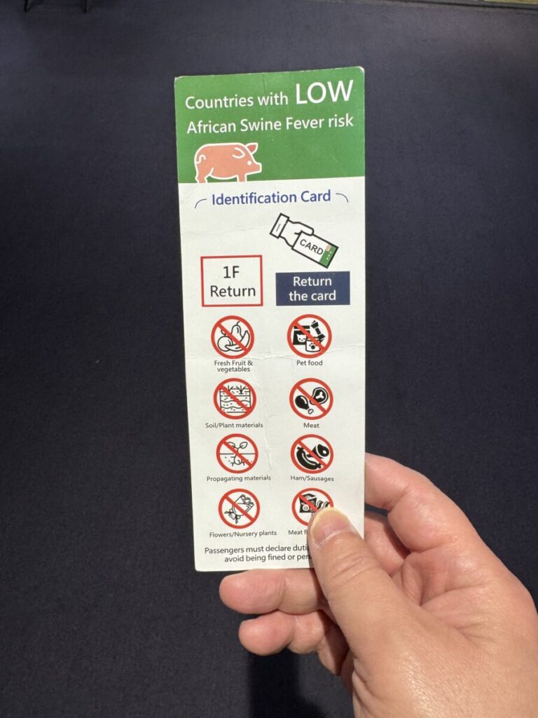 これがないと面倒な手荷物検査があります。以前、ベトナムのダナンから入国したときは検査免除国ではないため検査されました。結構列ができる検査になるので絶対に受け取ってください。